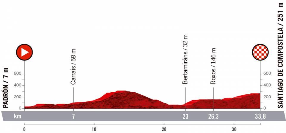 Etapa 21 Contrarreloj individual Domingo, 5 de septiembre de 2021 Padrón > Santiago de Compostela 33.8 km